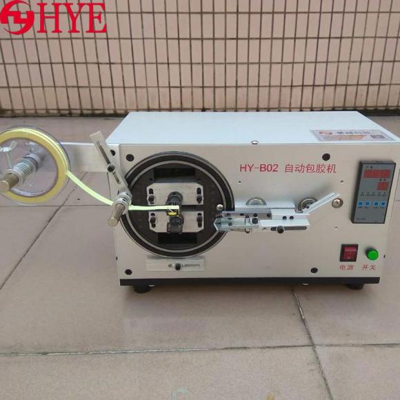 我司慧越科技HY-B02自动包胶机是胶布内圈34mm及77mm均适用;两轴式包胶布,胶布轴心距离自25-85mm均可调整;可包多种变压器;尺寸:约长300x 宽550x 高250mm;约重30KG。